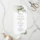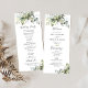 Greenery Bröllopsprogram. Den här inbjudan från snyggt & elegant bröllop innehåller en fantastisk, handmålad vattenfärg som är för blommigt av eukalyptus. Sök efter matchande objekt i Greenery Collection för Eucalyptus Blommigt Watercolor.