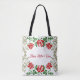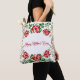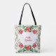 Mors dag-presentidé om en anpassad, modern Tote Bag med Namn och Hälsning. Ett perfekt sätt att handla för Mors dag, DIY-projekt och hantverk. Blommigtens illustration innehåller ro-klippbilder av typen Red/Maroon/Burgundy rustic i greenery. På baksidan visas en motsvarande illustration. Om du tycker om den här teckningen kan du besöka lagret helgdagars_festivaler för matchande/liknande objekt. Länk: https://www.zazzle.com/store/holidays_festivals