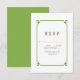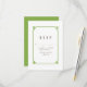Ett enkelt och minimalistiskt dekokort för Bröllop OSA med en modern grönt konst deka dekoratornamental gräns. Det här klassiska svarskortet och svarskortet på eleganten är enkelt att anpassa med din bröllop-information. Hitta fler anpassningsalternativ genom att klicka på Anpassa.