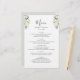 Öka din bröllop-matupplevelse med vår designade meny bröllop. Den här lyxiga menyn har en delikat arrangemang av vattenfärgsvita blommor och neutralt blommor, vilket gör att du får en mjuk, romantisk beröring i inställningarna för bord. Rubriken "Menu" är på ett elegant sätt skriven i modern kalligrafi, med elegans och charm. Nedan visas menyinformationen i ett elegant serif-teckensnitt, vilket säkerställer att varje kursbeskrivning är både tydlig och förfinad. Denna meny är designad för att komplettera bröllop sofistikerade ambitioner och är perfekt avvägd mellan skönhet och funktionalitet. Det är mer än bara en guide till dina kulinariska erbjudanden - det är en vacker keepsaké som förstärker den speciella dagens allmänna estetik.