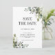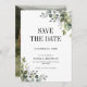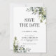 Elegant greenery Photo on Back Save the Date Card with water color eucalyptus lövs and soft botanical foliage. Den här klassens utformning är perfekt för vår eller sommar-bröllop. Den har en modern palett för grönt. Ett tidlöst val för par som kärlek naturverk, romantiskt och bladinspirerat bröllop. Koordinerar perfekt med matchande inbjudningar och OSA kort från samma samling.