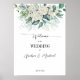Välkomstskylt för Greenery eucalyptus vit ros bröllop.