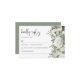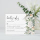 Svara i stil med denna elegant grönt eukalyptus och vit ros bröllop OSA-kort. Anpassa enkelt onlinen till en tidlös design som kompletterar dina bröllopsinbjudningar perfekt.