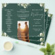 This elegant wedding trifold program features floral greenery on an emerald green background. Designed by Thisisnotme©