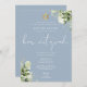 Greenery Floral Monogram Blue Bar Mitzvah Inbjudningar
