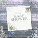 En elegant babyduschnapkin med dammig blå typografi och söt botaniskt grönt löv. Designad av Thisisnotme©