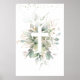 Greenery Foliage Cross Baby Baptism Poster