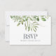 OSA kort har en grönt blad och dina detaljer är skrivna med ett vackert teckensnitt. Perfekt för ett vår-trädgård/bröllop-tema utomhus. Ändra teckensnittet storlekt, stil och färg genom att klicka på knappen Anpassa. Ordna om bröllopsinbjudan för att passa din stil. Matchande objekt är tillgängliga.