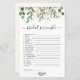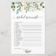 Greenery Foliage Ord Scramble Möhippa Game. Denna utformning illustrerar grönt guld löv med röda bär i vattenfärgen stil på vit bakgrund. Överst på kortet - gyllene effektkonfetti. Svaret nyckel: Honeymoon, Kakan, Vows, Bröllop, Aisle, Bouquet, Giftermål, Bridesmaid, Flowers, Forever, Groom, Reception, Champagne, Make, Kärlek, Familj, Kupel, Ringar