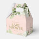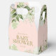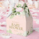 En elegant babyduschförmånslåda med grönt löv och chic guld-typografi på rosa. Du kan anpassa dig med ditt eget tackmeddelande under locket. Ett perfekt sätt att tacka gästerna! Designad av Thisisnotme©