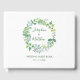 Den här gästen bok i bröllop har en vattenfärgad grön krans med löv och löv. Anpassa den med bruden och brudgummen namn. Den här gästen bok ingår i en samling som innehåller ett fullt med matchande bröllop-kontorsmaterial och möhippa-objekt. Besök insamlingssidorna i vår butik för att se det produktsortiment som du kan anpassa för dina behov av bröllop och möhippa.