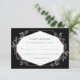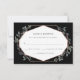 Svarskortet för trendig och elegant bröllop har en geometrisk form för faux ro guld, omgiven av vackra gröna grenar, på en mörk, svart bakgrund.