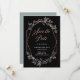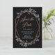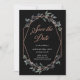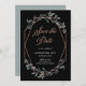 Det här trendiget och elegant bröllop sparar datumkortet med en faux-guld-geometrisk form omgiven av vackra gröna grenar, med snyggt faux-ro-skripttypografi, på rons svarta bakgrund.