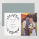 I det här trendiget och i elegant bröllop har du ett kort med ett faux-guld-geometriskt format omgivet av vackert grönt grenar och ditt favoritfoto från bröllop.