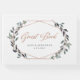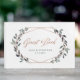 Trendiget och elegant bröllop gäst bok har en geometrisk form som är perfekt för ro guld och omgiven av vackra gröna grenar.