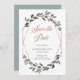 Det här trendiget och elegant bröllop sparar datumkortet med en faux-guld-geometrisk form som omges av vackra gröna grenar, med snyggt faux-ro-skripttypografi.