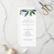 Detta trendiga och eleganta bröllopsprogram har en falsk rosa guldgeometrisk form omgiven av vackra gröna grenar.