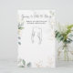 Greenery Foliage gissar Dress Möhippa eller Bachelorette Party-spelet. Texten "Gissa klänningen" är skriven i ett skript med gått med hjärta och diamant ring. Du ritar stil i bröllop klänningen, den närmaste till brudens klänning vinner!