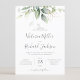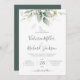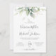 Vacker bröllopsinbjudan med vattenfärgad eukalyptus och guld löv.