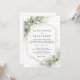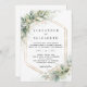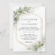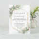 I denna inbjudan till elegant bröllop finns handmålade vattenfärger Eucalyptus löv, guld och vackra gröna grejer.