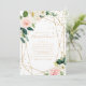 Denna inbjudan till en grön och guld geometrisk elegant till en förnyad middag är perfekt för en modern bröllop-repetition. Utformningen har ett vackert vitt, rosa och handmålat ro och en smula grönt, adorerande guld geometriskt ramar, inspirerande konstnärlig skönhet.