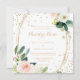Den här gröna och guld-geometriska eleganten Spanska bröllopsinbjudan är perfekt för ett orustiskt bröllop. Utformningen har ett vackert vitt, rosa och handmålat ro och en smula grönt, adorerande guld geometriskt ramar, inspirerande konstnärlig skönhet.