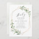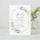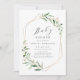 Modern gienery babydusch-inbjudan innehöll rustiska vattenfärger botaniska lövgreer och faux guld foil löv och geometrisk ram, enkel och elegant. Visa alla matchande delar i samlingen