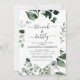 Brunch och BubLY Champagne Greenery Botanical Watercolor Vår bröllop Inbjudningskort för möhippa på vit bakgrund - innehåller vacker och elegant manustypografi med modernt botaniskt löv och grön för att speciella Briden ska vara firande.