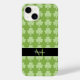 Grey Klöver Patrick's Day Monogram Fodral-Mate iphone case. Anpassa telefonfodralet till elegant vår med ditt initialfall och namn. Shamrock Klöver med vit Polka dots och grön ljust grönt mönster St. Patrick's Day.
