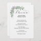 Den här vattenfärgens menydesign är helt redigerbar och redo för att ange information. Blommigtarna är lavender färg som är inklämda med eukalyptus boxwood och ferns. Anpassa formen på den pappra texten, typen av papper och all text.
