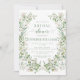 Elegant raffinerad, den här rustiska inbjudningskort för möhippan visar en känslig krans av grönaktiga löv och vita blommor som färgats i mjuka vattenfärger. Inbjudan läggs till med modern kalligrafitext i en sofistikerad dammig grönt som skapar en tidlös och elegant design. Perfekt för att ange tonen för ett minnesvärt firande.