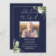An elegant navy blue, botanical watercolor greenery order of service funeral memorial program. Designed by Thisisnotme©
