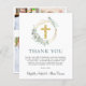 En elegant- och budgetvänlig baptism tack vare ett kort med en vattenfärgad illustration av guld kor i en utandning i guld, försedd med eukalyptus grey och "Tack" i en modern typografi i sage grönt. Anpassa ditt tackmeddelande och lägg till namn i ett calligraphy-skript. På den motsatta sidan lägger du till tre foton och ytterligare ett tackmeddelande, välsignelse, bibelcitat osv.