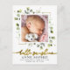 Fantastiskt grönt vattenfärg, fotofödelsemeddelande och tack för vykortet. Enkel att anpassa med foton och detaljer från baby. Kontakta mig via chatta om du har frågor om teckningen eller behöver anpassa den. OBS! Kontakta Zazzle Customer Care direkt https://help.zazzle.com/hc/en-us/articles/221463567-How-Do-I-Contact-Zazzle-Customer-Support- om du behöver hjälp med beställningar, frakt, produktinformation osv.