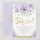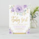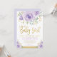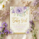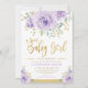 Fira att din söta flicka är på väg att komma med den här gigantiska babyduschinbjudan. Utformningen har söt vattenfärgsfärg, lila ro och grönt och grönenergi i guld.