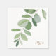 Eucalyptus Stem Greenery Bröllop Cocktail Napkins. Vit bakgrund. Guld Monogram.
