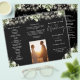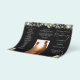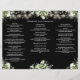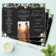 This elegant wedding trifold program features floral greenery and string lights on a black background. Designed by Thisisnotme©