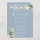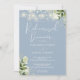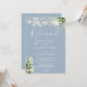 Elegant sträng ljus, blommigt grönt, dammig blått repetitionsmiddagsinbjudan med din namn och repeteringsmiddagsinformation som anges i chic och ditt monogram initialer på motsatt sida. Designad av Thisisnotme©