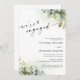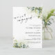 Grey Vi är engagerade i inbjudan. Den här inbjudan till snyggt & elegant bröllop-visningsprogrammet har en fantastisk, handmålad vattenfärg Greenery. Hitta matchande objekt i Greenery Eucalyptus Blommigt Collection.