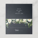 Royalet blått bröllop-kort med grön blommigt är perfekt för ett rustiskt bröllop. Konstruktionen har vattenfärgade vita peonier med grönt i mörk blått bakgrund. Anpassa baksidan av platskortet med namn på bruden och trippen och datum.