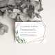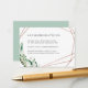 Släng den här chicen och skicka in dina bröllopsinbjudningar för att få ut gäster från stan med information om hotellarrangemang eller gruppkoder. Designat att samordna med vår Greenhouse bröllop-samling, har korten vita bokstäver med geometriska konturer av faux kopparfolie och gröntens botaniska bladfärg i hörnet.