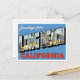 Capture the sunny charm of Southern California with this vibrant vintage-style "Greetings from Long Beach, California" postcard! This classic large-letter design features the city name in bold, eye-catching script set against a bright blue background with bold red lettering for the state. Inside the block letters, you'll find scenic vignettes of Long Beach life, including the famous shoreline, towering palm trees, the downtown skyline, and relaxing beach scenes. This design perfectly embodies the mid-century travel aesthetic.