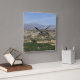En beskåda av den medelhavs- grekiska ön av Crete med olivgröna dungar och berg i bakgrunden.