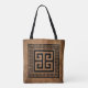 Toteväska med grekisk nyckel (Meander) mönster elegant svart design med nyckelkant som passar på brun antik grekisk stil bakgrund. Denna design av det berömda och populära grekiska mönstret av den kontinuerliga linjen kan redigeras för att ändra färg om du vill.