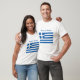 En T-shirt med den grekiska flagga på den och "Made in Greece" på toppen i ett grekiskt tittar typsnitt. Du kan redigera färg i texten (som för närvarande är inställd på samma blått som rand i flagga)