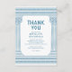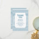 Elegant tack vare tacksamhetskort för grekisk eller romersk toga-fest med minimalistiska tempelpelare och grekiskt meander-mönster i blått. Anpassningsbar produkt för en minnesvärd fest. Perfekt för dina antika Grekland- eller antika Rom-tema bröllop, förlovningar, examensfester, årsdagar, save the dates, möhippor och födelsedagsfester.