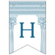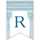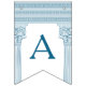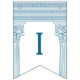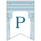 Toga-festflaggor med minimalistiska tempelpelare och grekiskt meander-mönster i blått. Perfekt för dina antika Grekland- eller antika Romarrikets-tema bröllop, förlovningar, examensfester, årsdagar, spara datum, möhippor och födelsedagsfester.