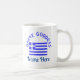 Personlig design visar Greklands flagga och orden GREEK GODDESS ovan, i blå bokstäver på två sidor av kaffemuggen. Lägg till ett namn under för att anpassa din kaffemugg eller skapa en skräddarsydd present. Roligt för grek-amerikaner, grekiska kanadensare eller någon med grekisk härkomst, härstamning eller kultur. YIASSOU! Flaggan är blå och vita ränder med ett blått kors på en vit bakgrund i det övre vänstra området.