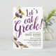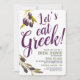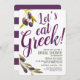 Fira din Möhippa och framtida matrimoni genom att kasta ett livsmedelssmakande evenemang mellan stil och Grekland. Låt alla socialisera samtidigt som de smakar det grekiska cuisineets bästa och populäraste diskar. I inbjudan finns olivoljefältet grenar som är inramat längs med orden "låt oss grekiska" mot mitten. Hela inslag i inbjudan är olåst och anpassadet Inklusive sangria "låt oss grekiska"-frasen.