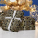 Grekisk nyckel guld på svart geometrisk presentpapper